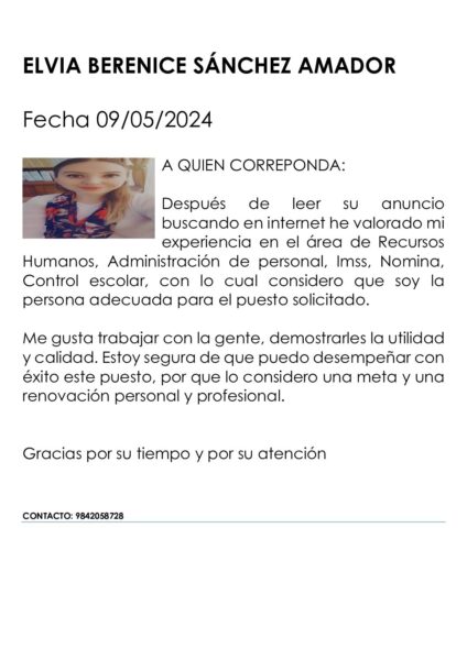 Estudiante Elvia Berenice Sánchez Amador Estudiante @elvia-berenice-sanchez-amador • Se unió en Abr 2024 • Activo hace un año Eliminar conexión Are you sure you want to remove from your connections? Muro Perfil Grupos Documentos Videos Awards Conexiones Todo Inteligencia ArtificialMarketing DigitalRecursos HumanosContabilidad y FinanzasAdministración De EmpresasExcel + Power BIAnuncios Oficiales Open search filters Buscar Buscar actualizaciones… Reset Mostrar personal posts Personal Posts Reacted To From Groups From Connections Mentioned In Siguiendo por new posts New Posts Recent Activity Elvia Berenice Sánchez Amador publicó una actualización hace un año hace un año No se encontraron carpetas. Cree y seleccione la carpeta. Documentos Folder Title Following special characters are not supported: \ / ? % * : | " < > Privacidad Público Todos los Miembros Mis conexiones Sólo yo Cancelar Create infografia-de-la-cultura-organizacional-BERENICE.pdf 69 KB PDF - Clic para ver Options Copiar enlace Nadia yadira Favela hernandez 0 Comentarios Elvia Berenice Sánchez Amador publicó una actualización hace un año hace un año No se encontraron carpetas. Cree y seleccione la carpeta. Documentos Folder Title Following special characters are not supported: \ / ? % * : | " < > Privacidad Público Todos los Miembros Mis conexiones Sólo yo Cancelar Create carta-de-presentacion-BERENICE-SANCHEZ-AMADOR.pdf 53 KB PDF - Clic para ver Options Copiar enlace Elvia Berenice Sánchez Amador 0 Comentarios Público Todos los Miembros Mis conexiones Sólo yo PúblicoTodos los MiembrosMis conexionesSólo yo Público Todos los Miembros Mis conexiones Sólo yo Activity modal title