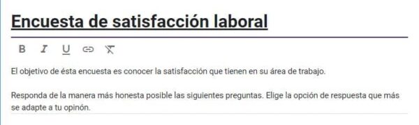 El objetivo de ésta encuesta es conocer la satisfacción que tienen en su área de trabajo los colaboradores.